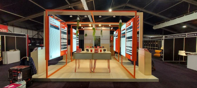Onze standenbouwers, die van een lege hal ineens een beursstand maken met veell zweet, vijzen en vloeken.