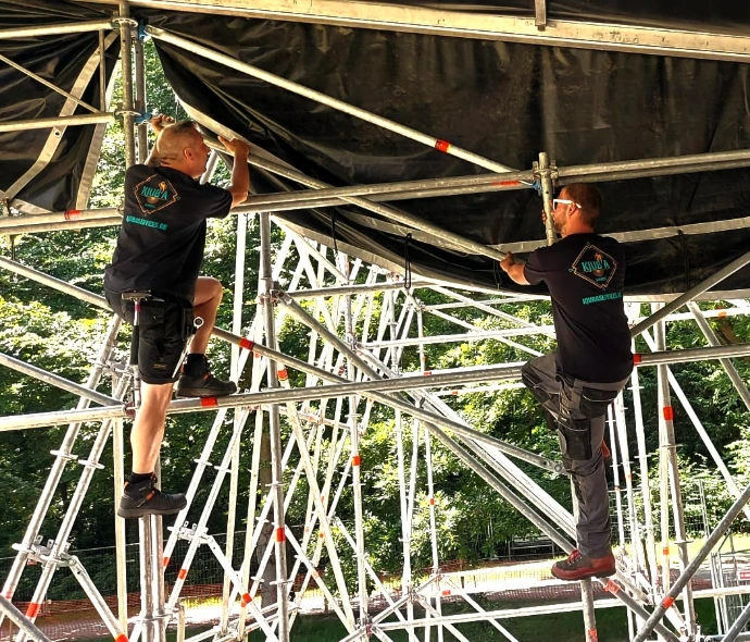 Met een waterpas in de hand en stalen zenuwen bouwen ze iets waar artiesten op kunnen schitteren. Zonder hen geen podium… alleen een artiest die awkward op de grond staat te performen.