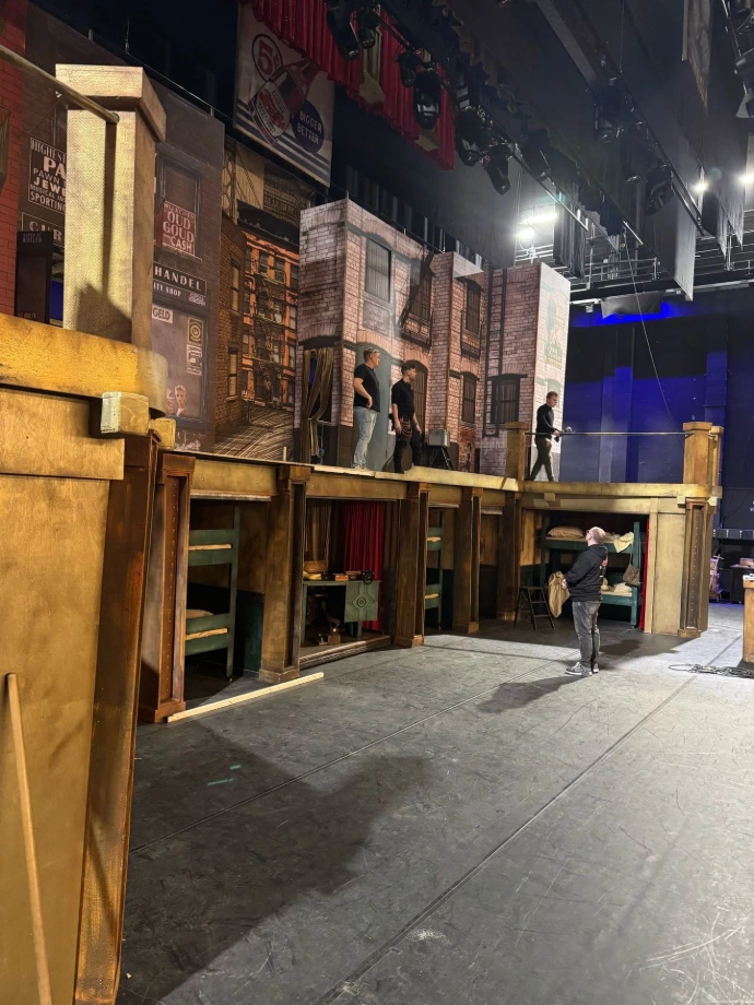 Onze decorbouwers, die van een hoop losse stukken ineens een decor maken dat er uitziet alsof het er altijd al stond.